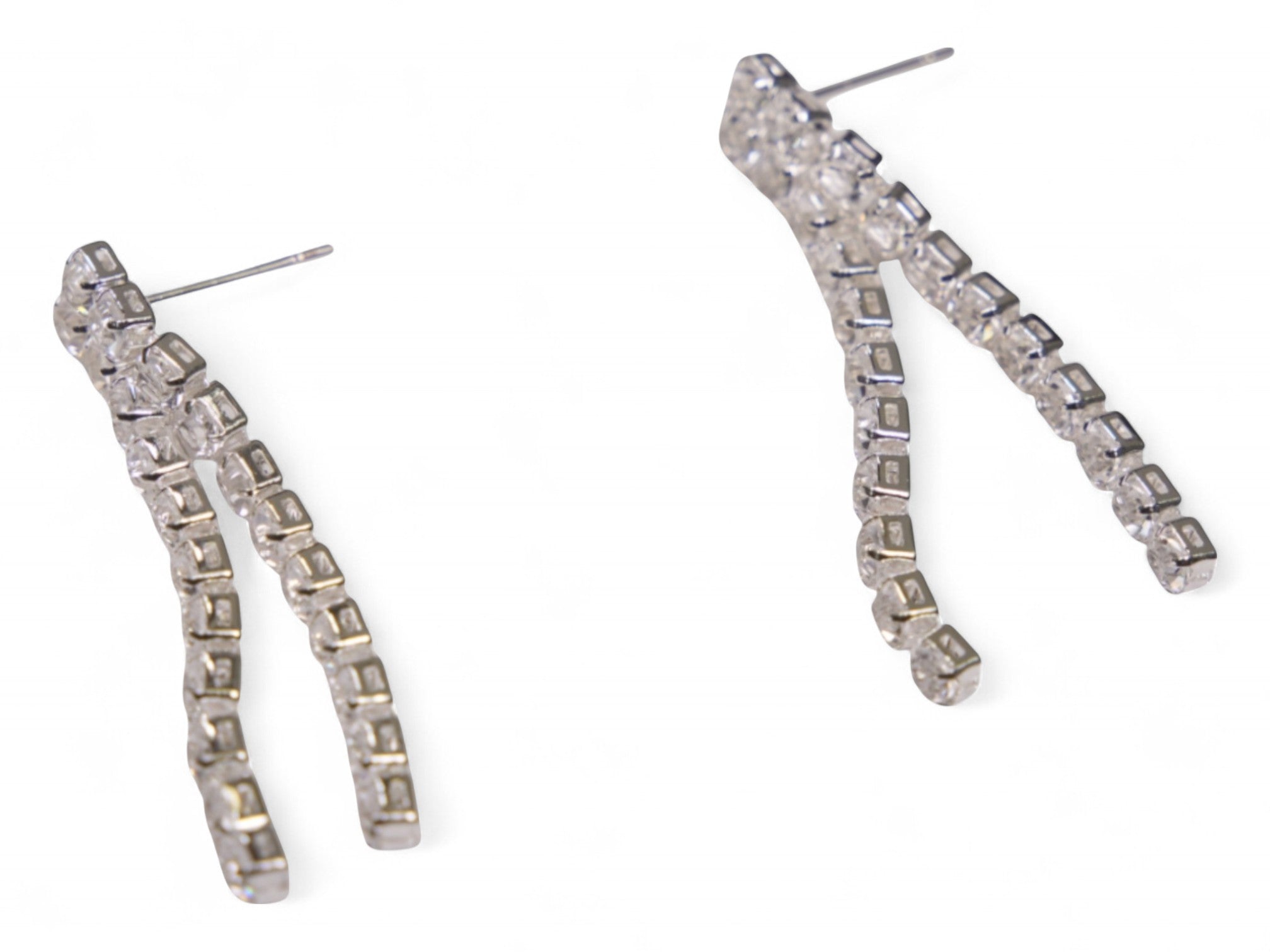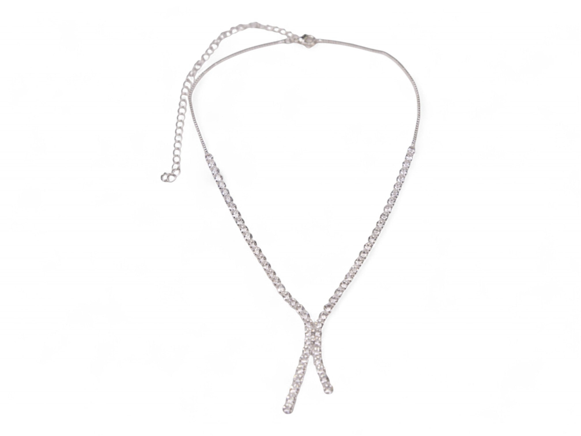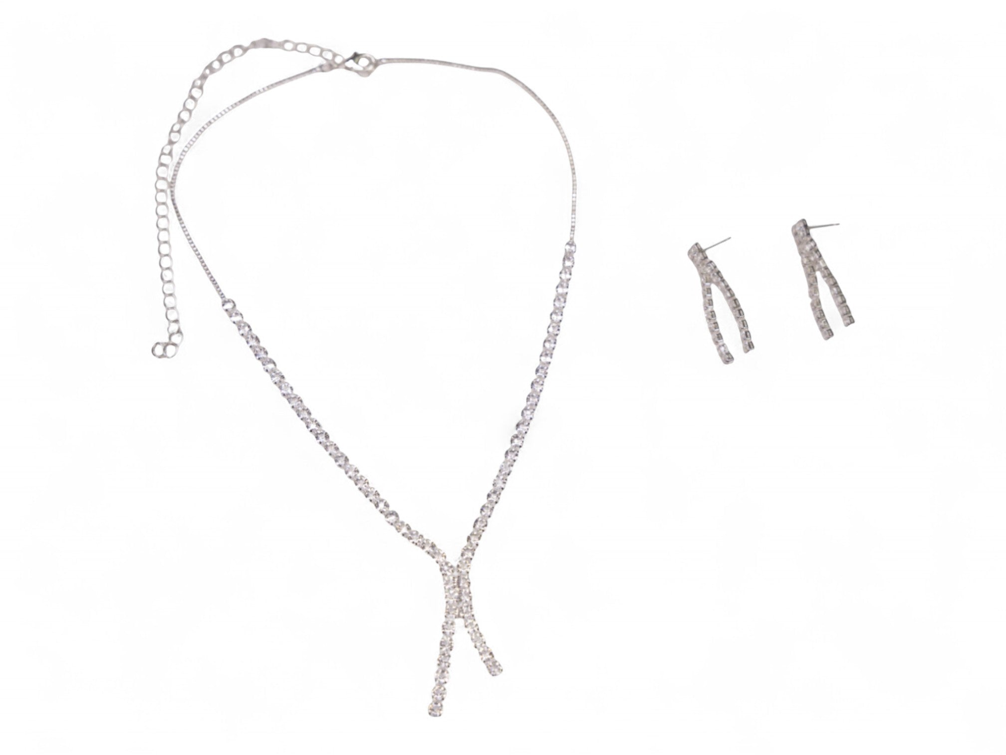 Add a touch of elegance to your look with this stunning Silver Stone Necklace & Earring Set. Crafted in a polished silver-tone metal, the set features a pair of eye-catching dangling earrings made of delicately linked chains. Each chain is adorned with small, clear square stones that catch the light beautifully, adding subtle sparkle to both daytime and evening outfits.