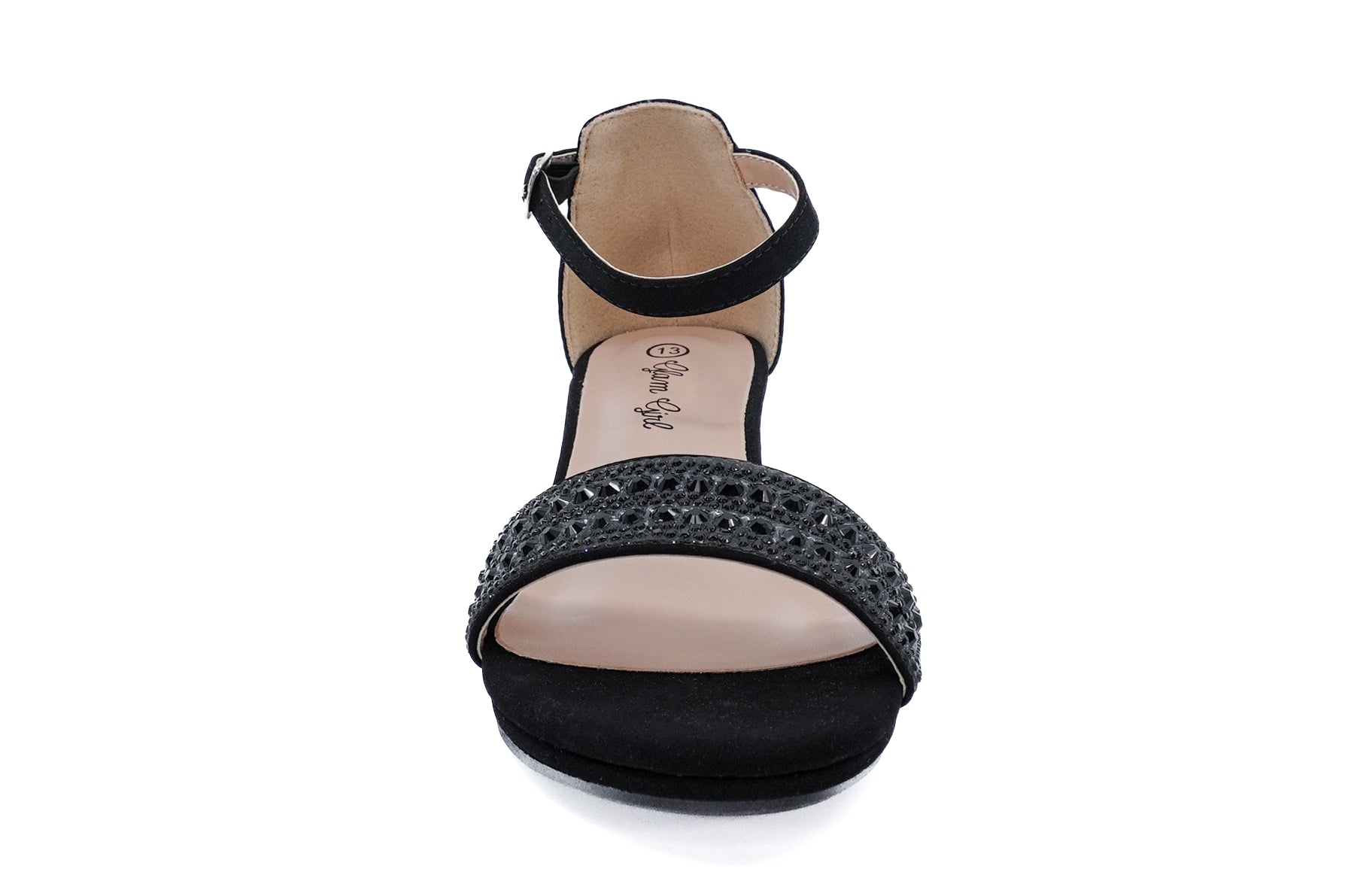 Elevate her occasionwear with the Girls' Black Nerea Dress Shoe, a stylish and comfortable choice for dressy events and special moments. This heeled sandal features a sleek black faux suede finish, combining elegance with a soft-touch feel that complements any outfit.