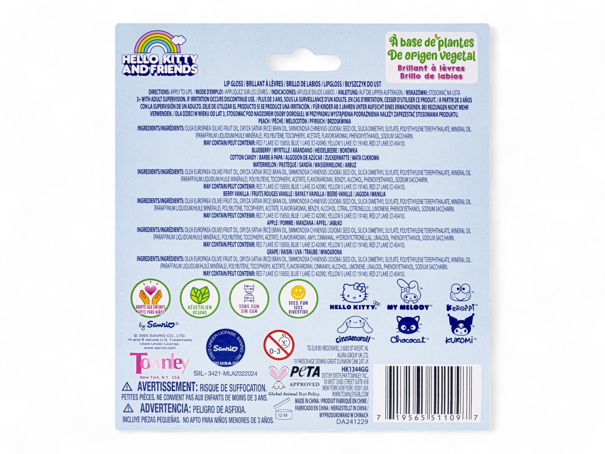 Crafted with a kid-friendly, plant-based formula, these vegan and non-GMO glosses are perfect for young fans. Each 0.9 mL (0.03 US fl oz) tube glides on smoothly for a gentle shimmer and touch of flavor. The packaging is 100% recyclable and decorated with charming illustrations that make the set a delightful gift or treat.