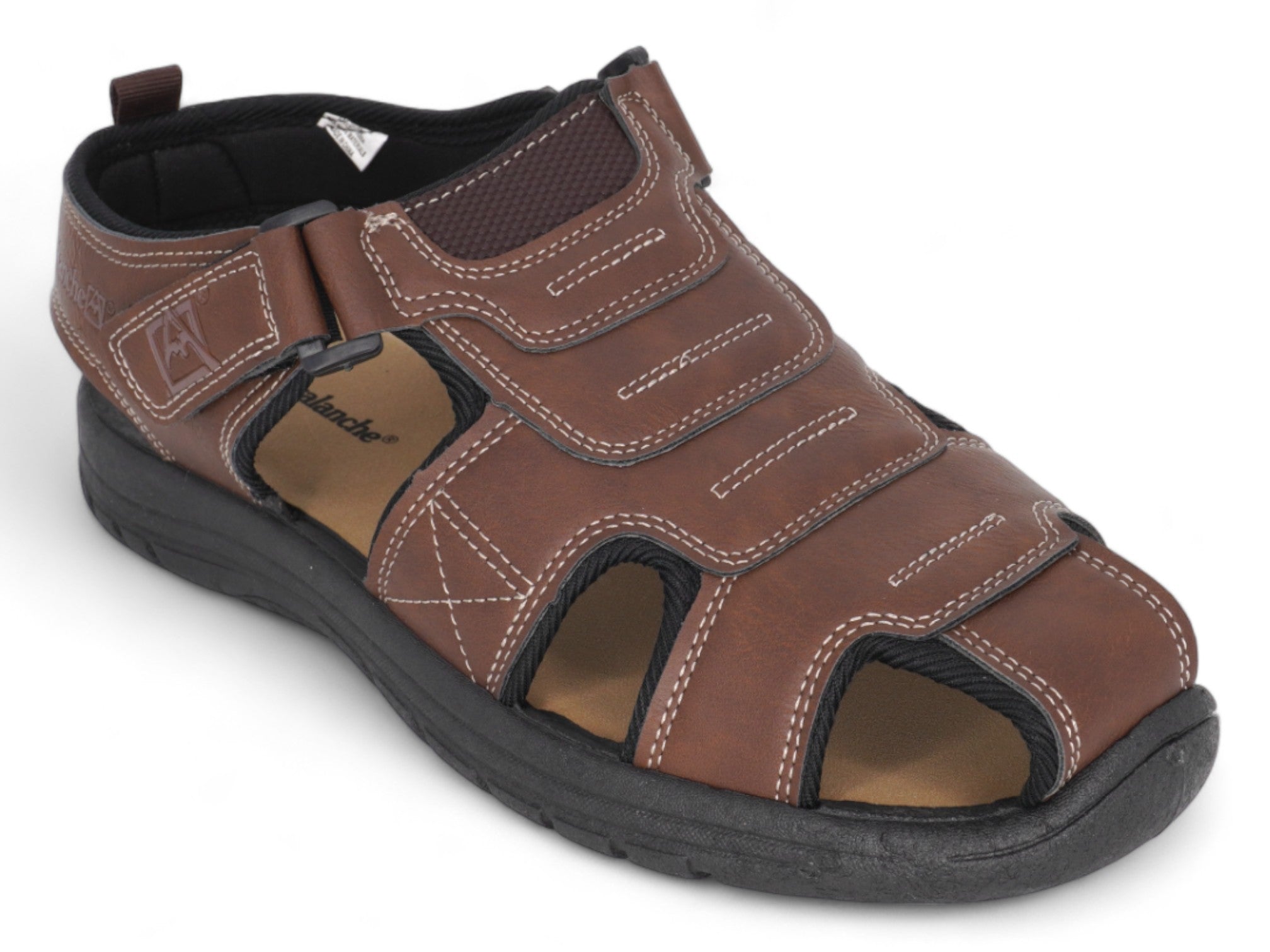 Adjustable Velcro straps ensure a secure and personalized fit, while detailed stitching adds subtle interest to the design. The sandal includes a soft synthetic insole for added cushioning and a sturdy black synthetic outsole that offers reliable traction across various surfaces. Ideal for warm-weather adventures or relaxed weekends, it blends function with laid-back style.