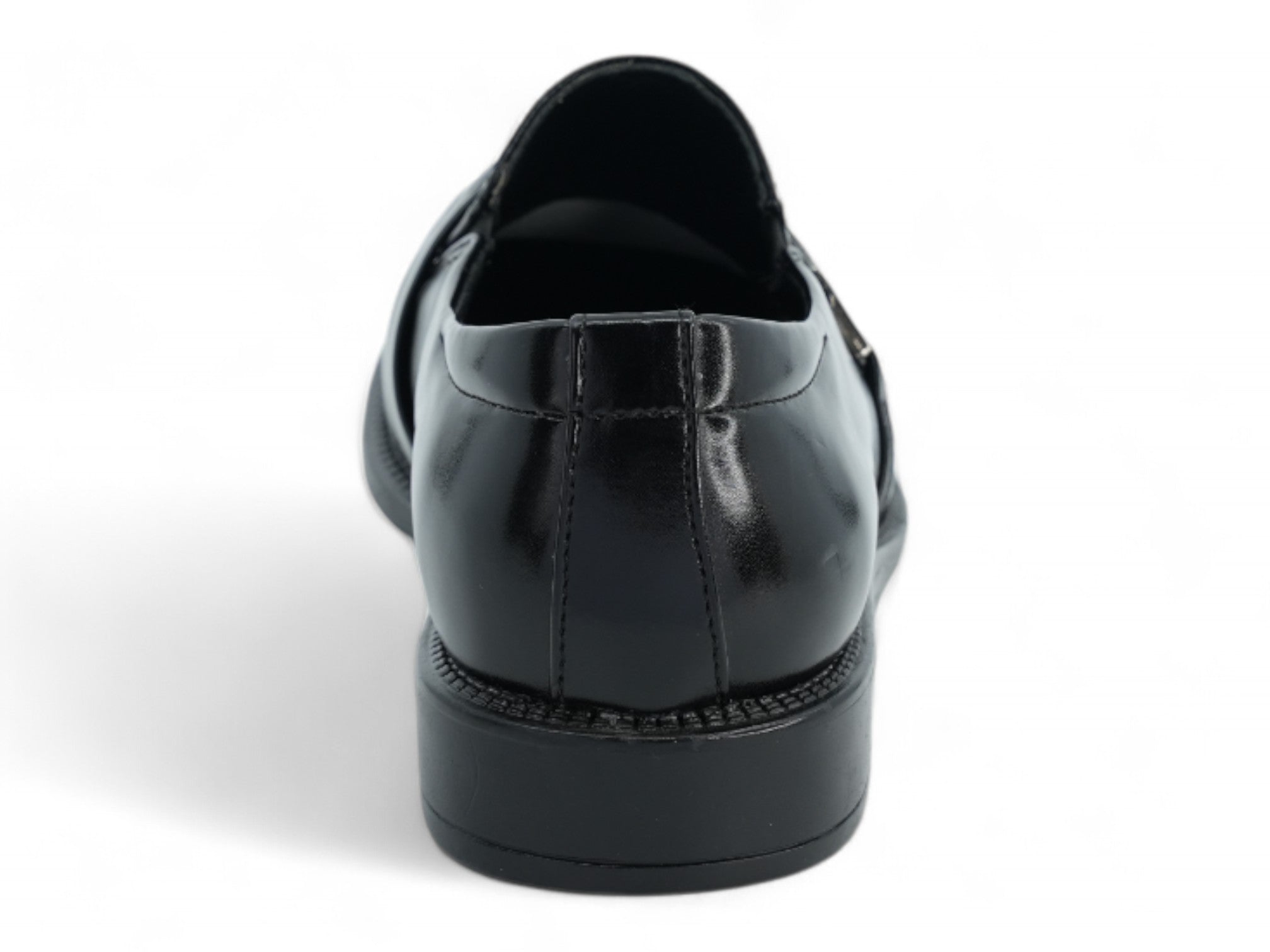 Step into timeless sophistication with the Men's Black Harold Wide Width Step-In Loafers. Crafted from textured black vegan leather, these stylish dress shoes offer both elegance and comfort for everyday wear or special occasions. The sleek silhouette is complemented by a decorative metal accent on the strap, adding a touch of refined character.