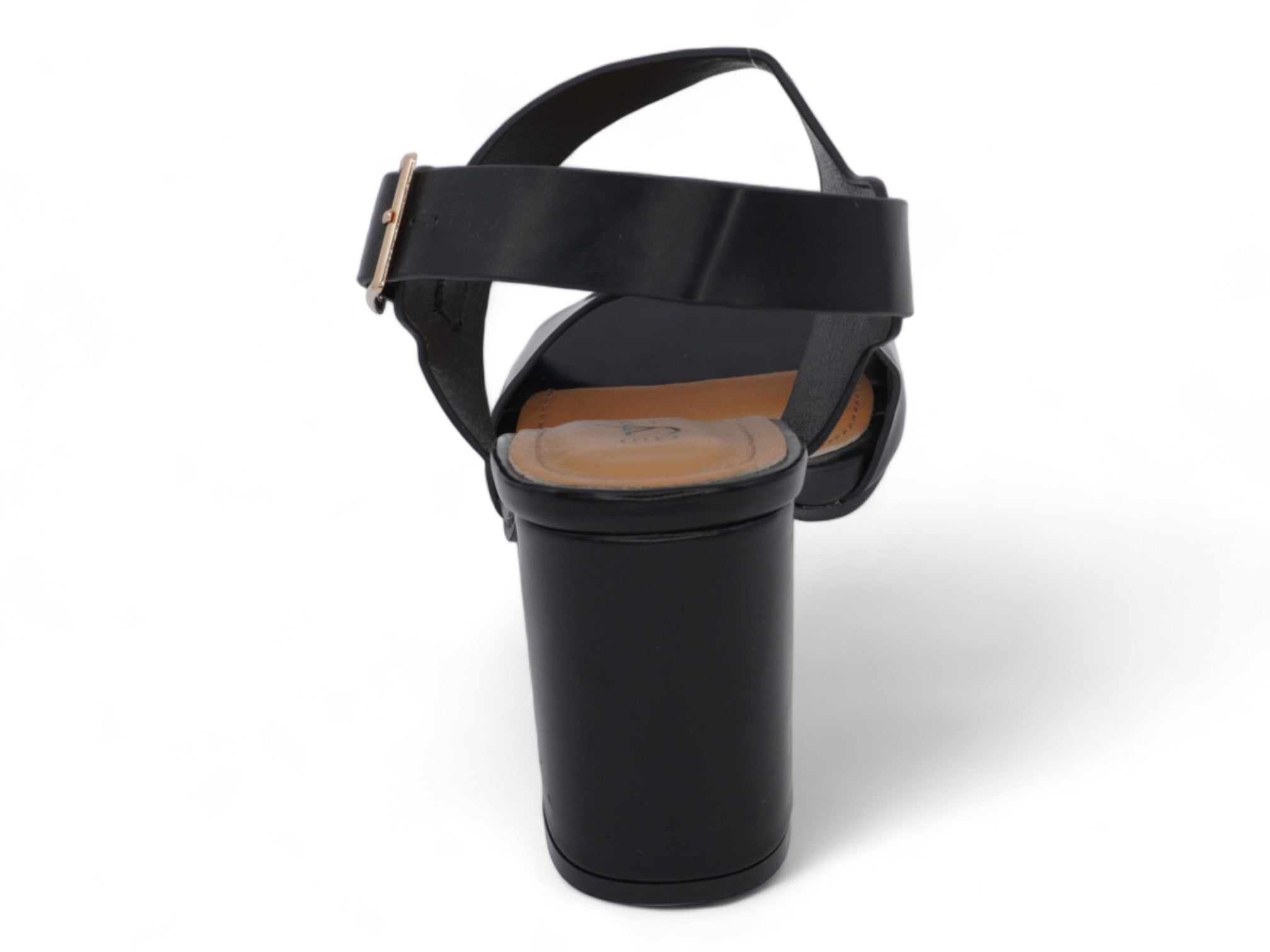 Step into confident elegance with the Women’s Black Liv Heel – a modern take on classic sophistication. Crafted with sleek black vegan leather straps, this sandal features a refined gold buckle closure at the ankle for secure, adjustable comfort. The open-toe design and smooth, tan synthetic insole complete its clean and versatile look.