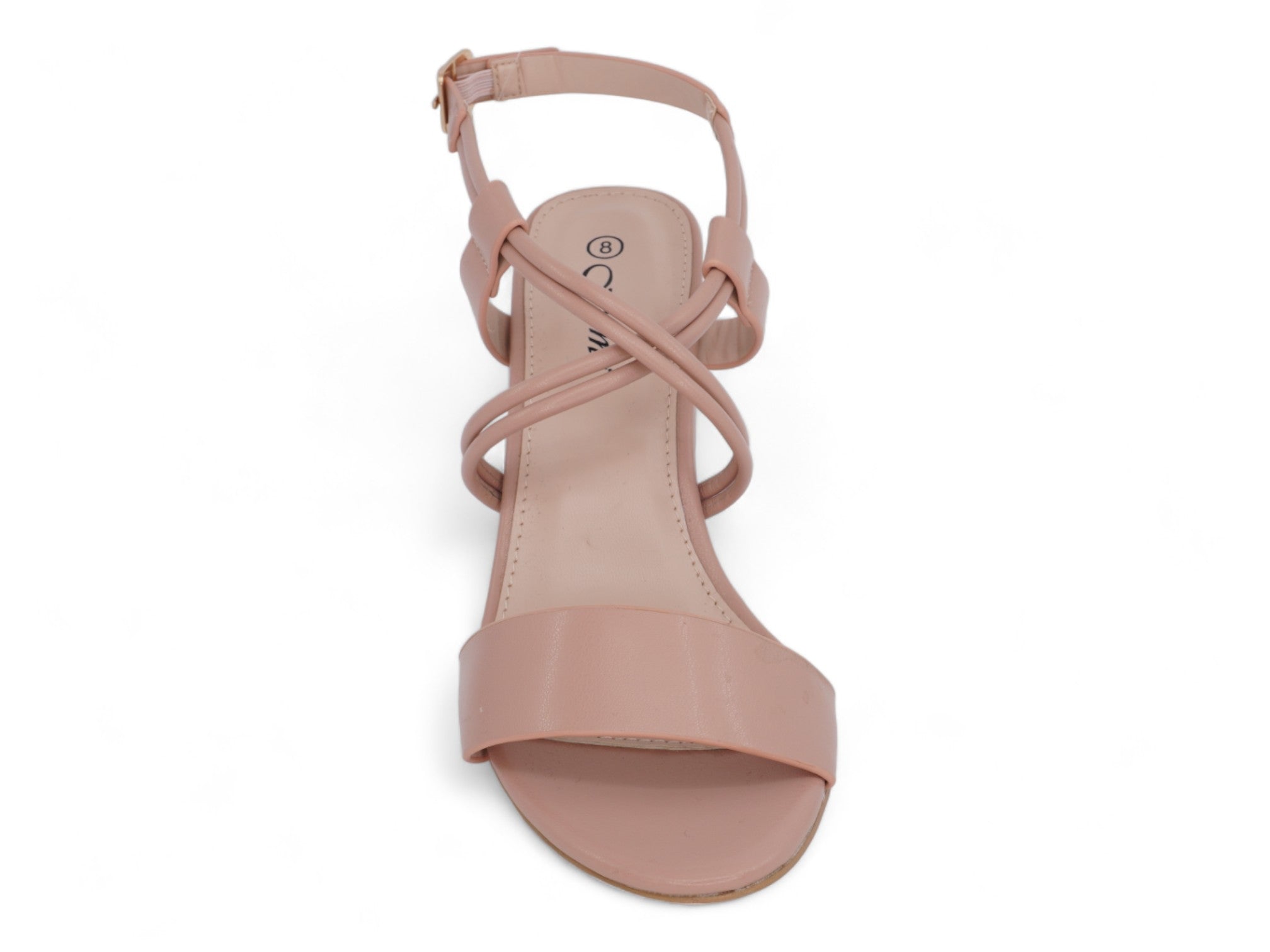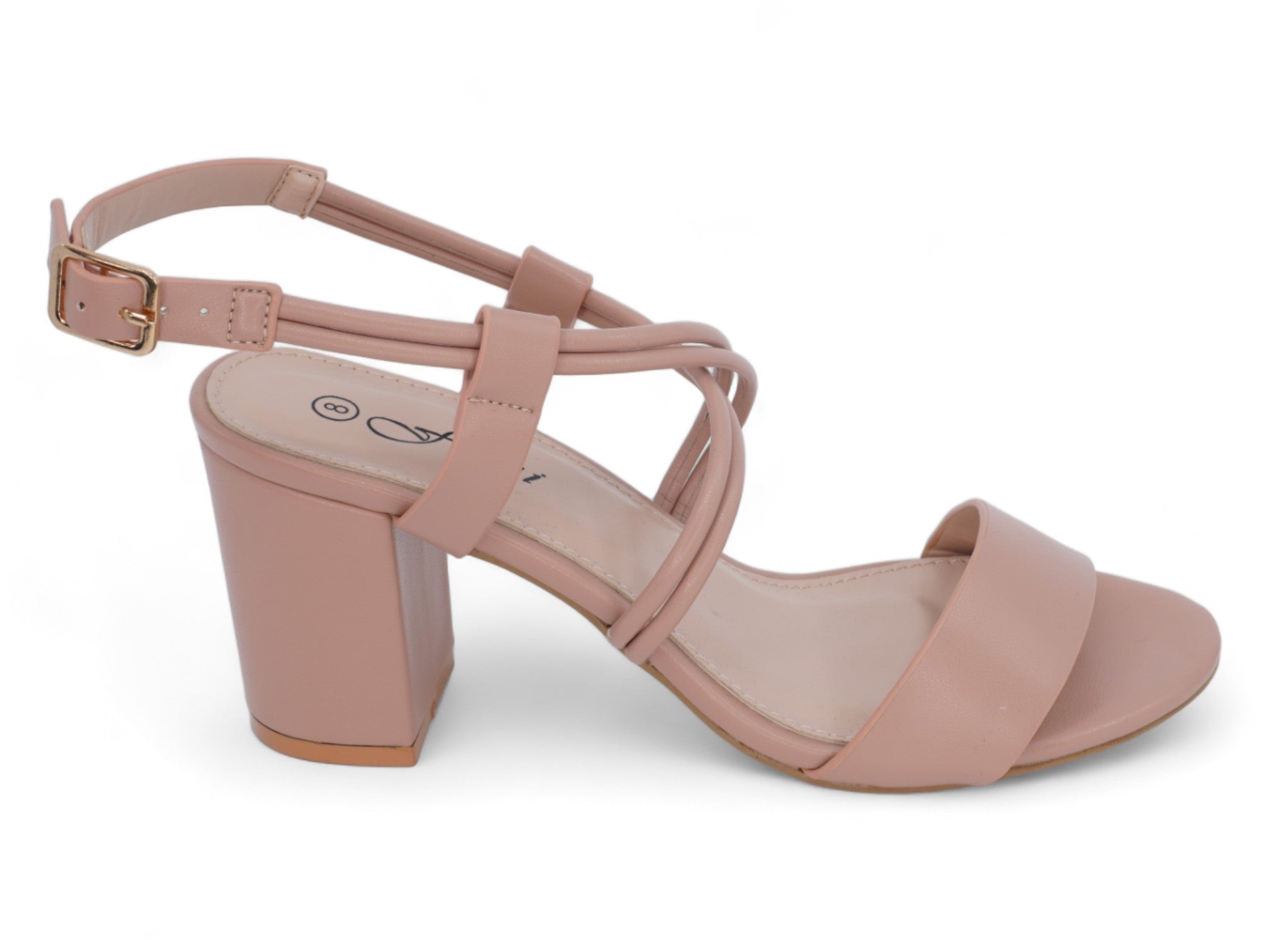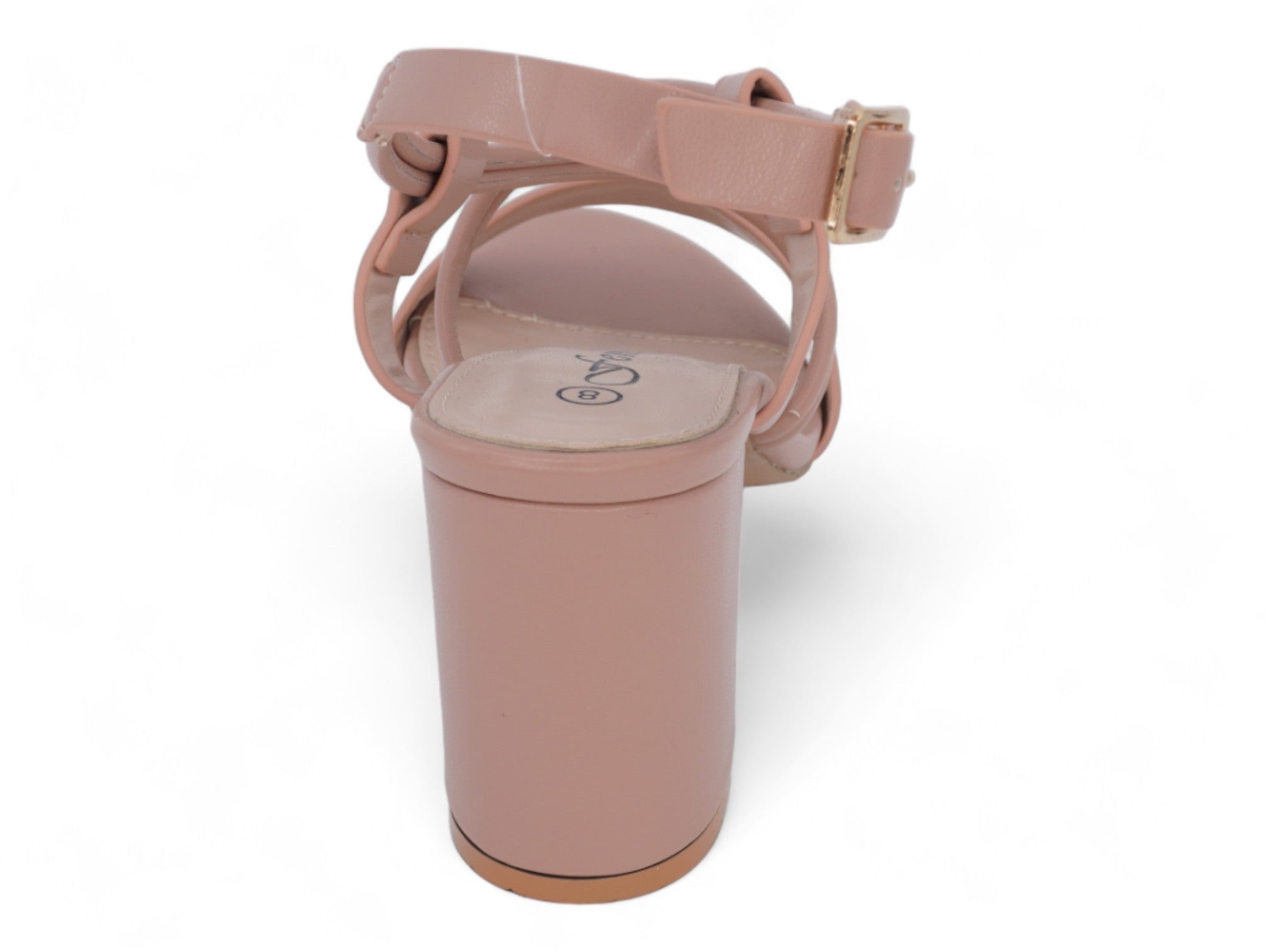 Blush vegan leather with toe and ankle strap.