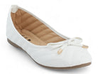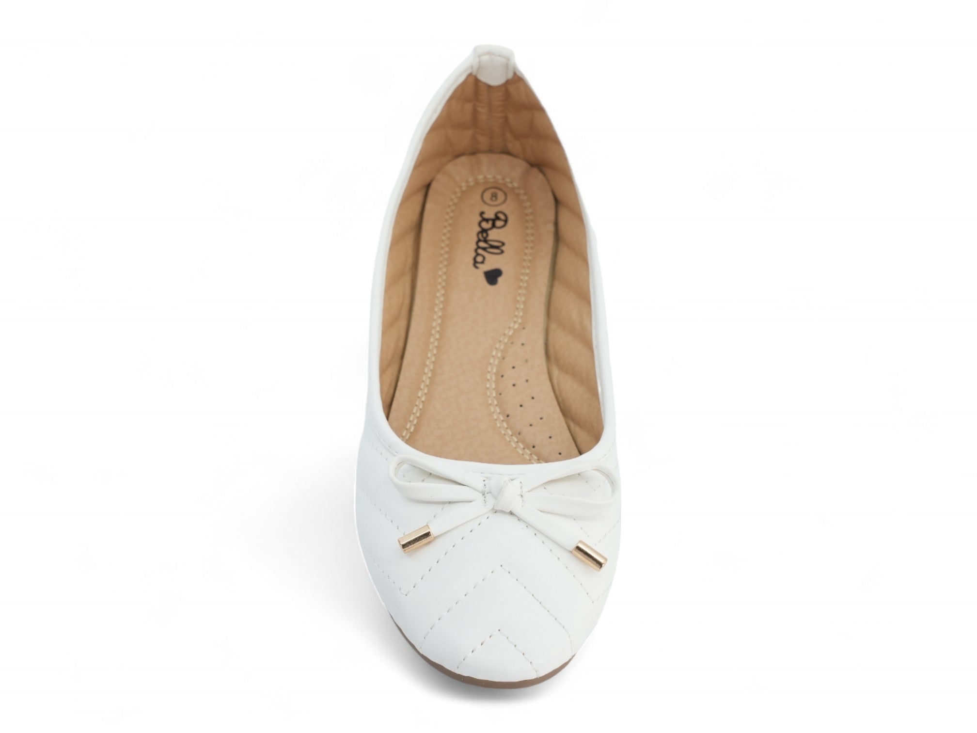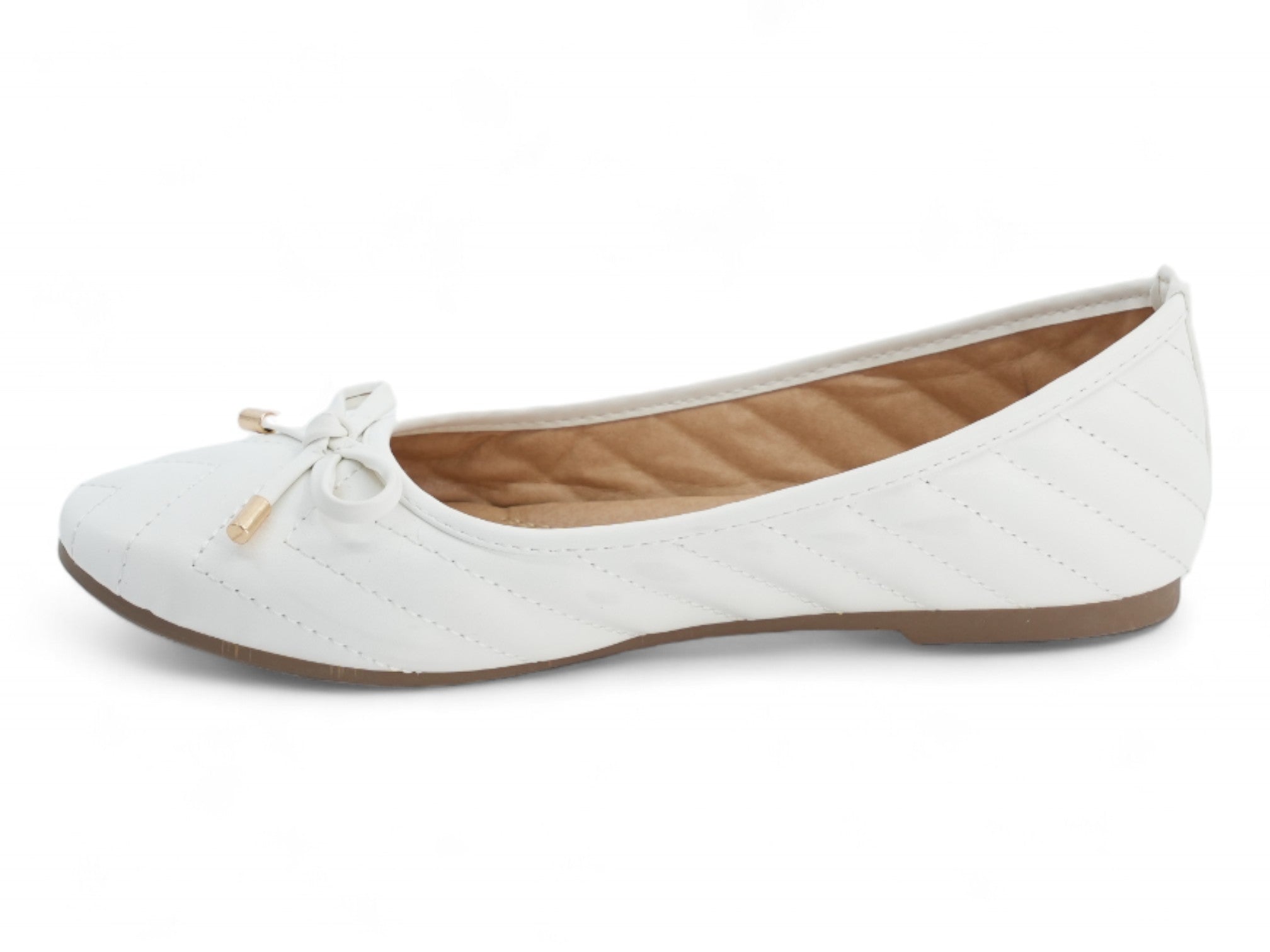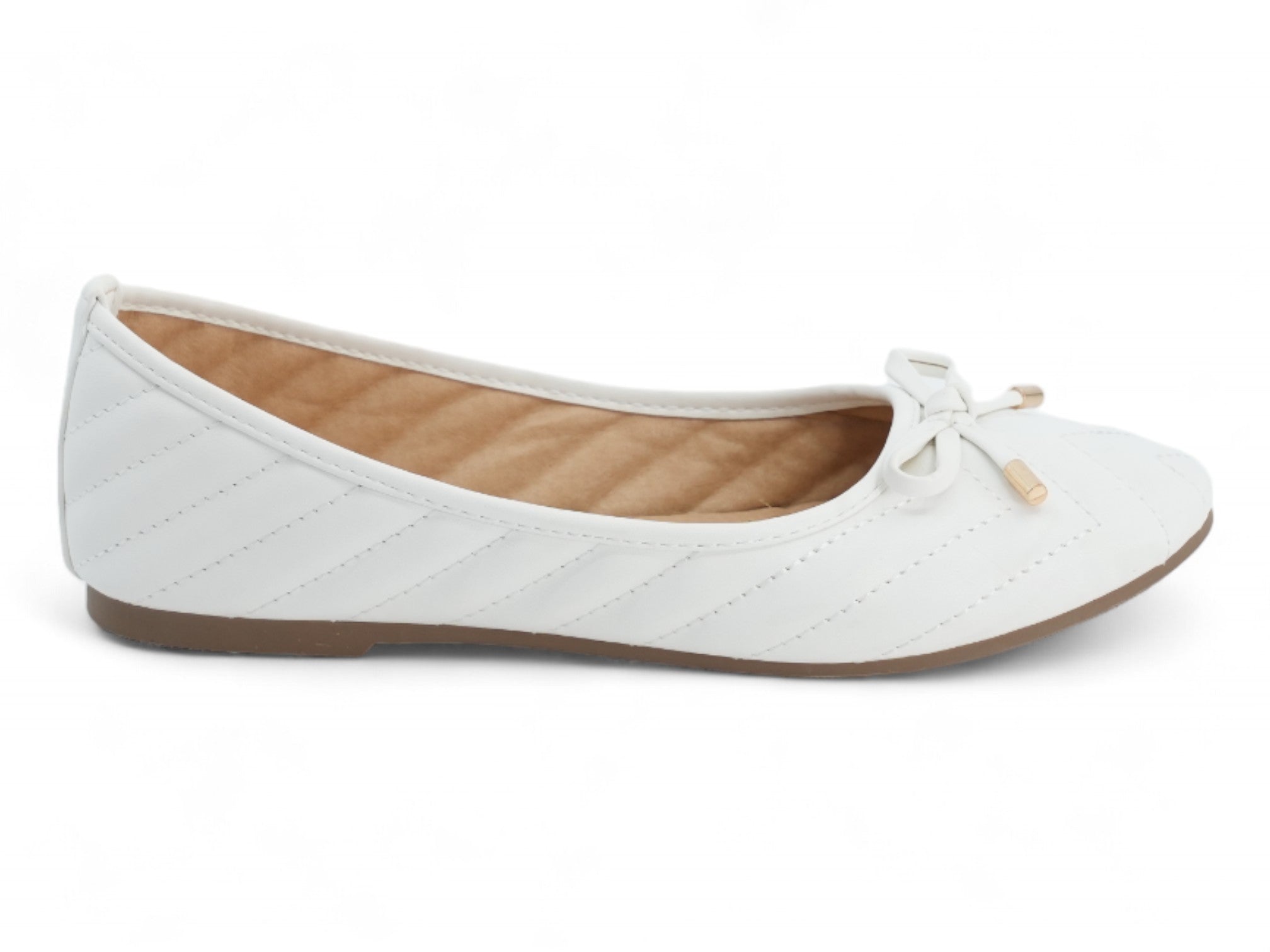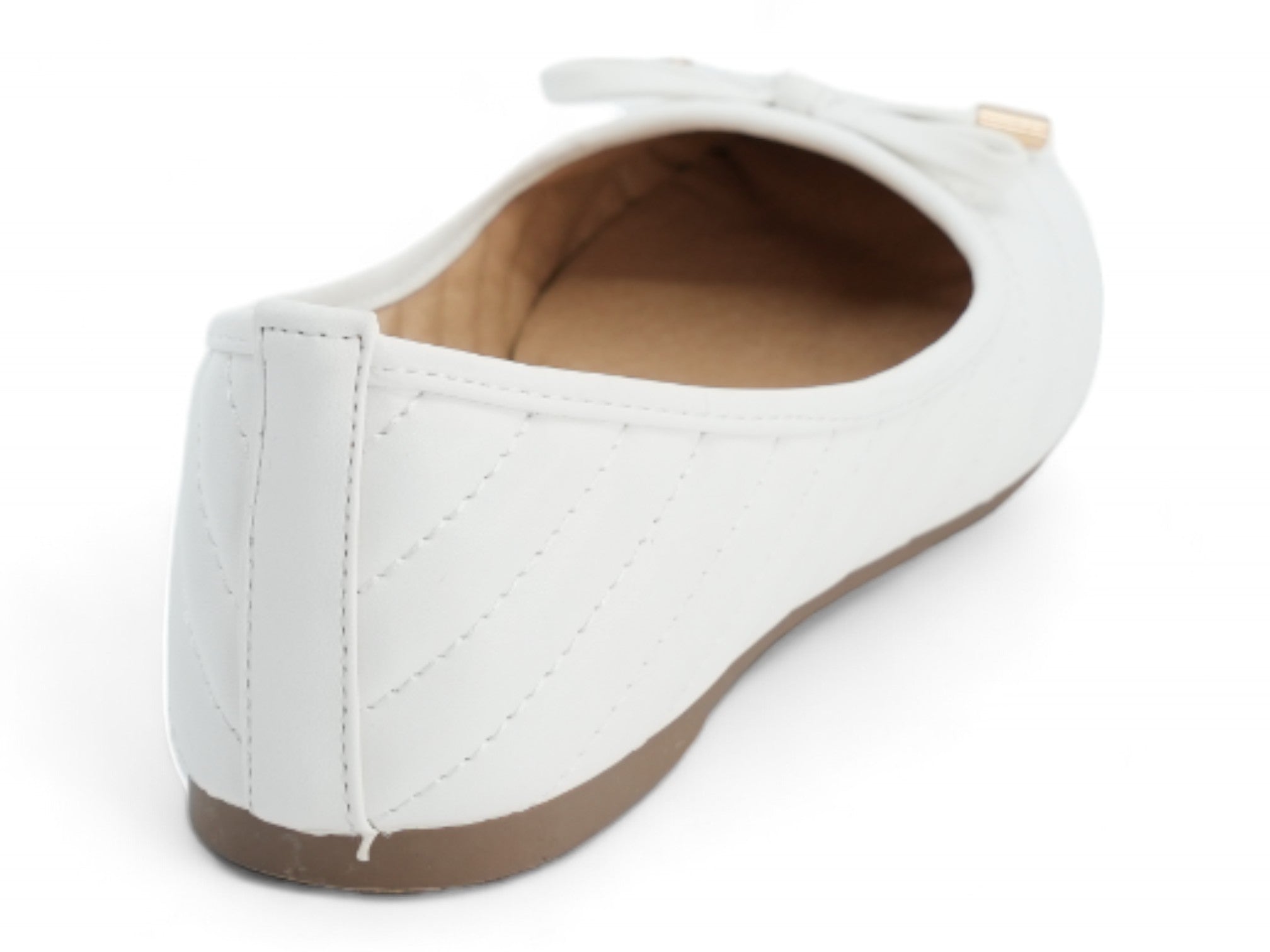 Step into everyday elegance with this white quilted vegan leather ballerina for women.. The crisp white finish and dainty bow bring a fresh, polished touch to spring outings, office looks, or weekend wear. A cushioned footbed and flexible sole keep you stylish and comfortable all day.
