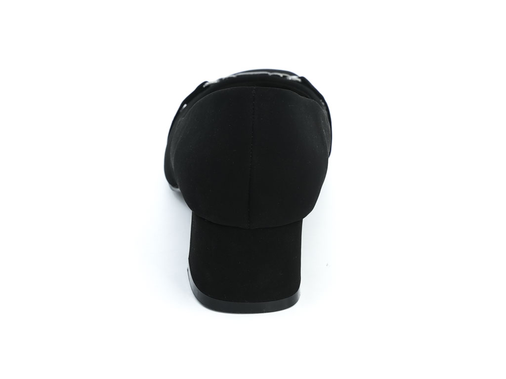 Step into timeless elegance with the Women’s Black Evita Wide Width Dress Shoe. Crafted from soft black faux suede, this sophisticated shoe features a sleek silhouette enhanced by a gleaming metal ornament on the toe, offering an elegant touch for both professional and formal settings.