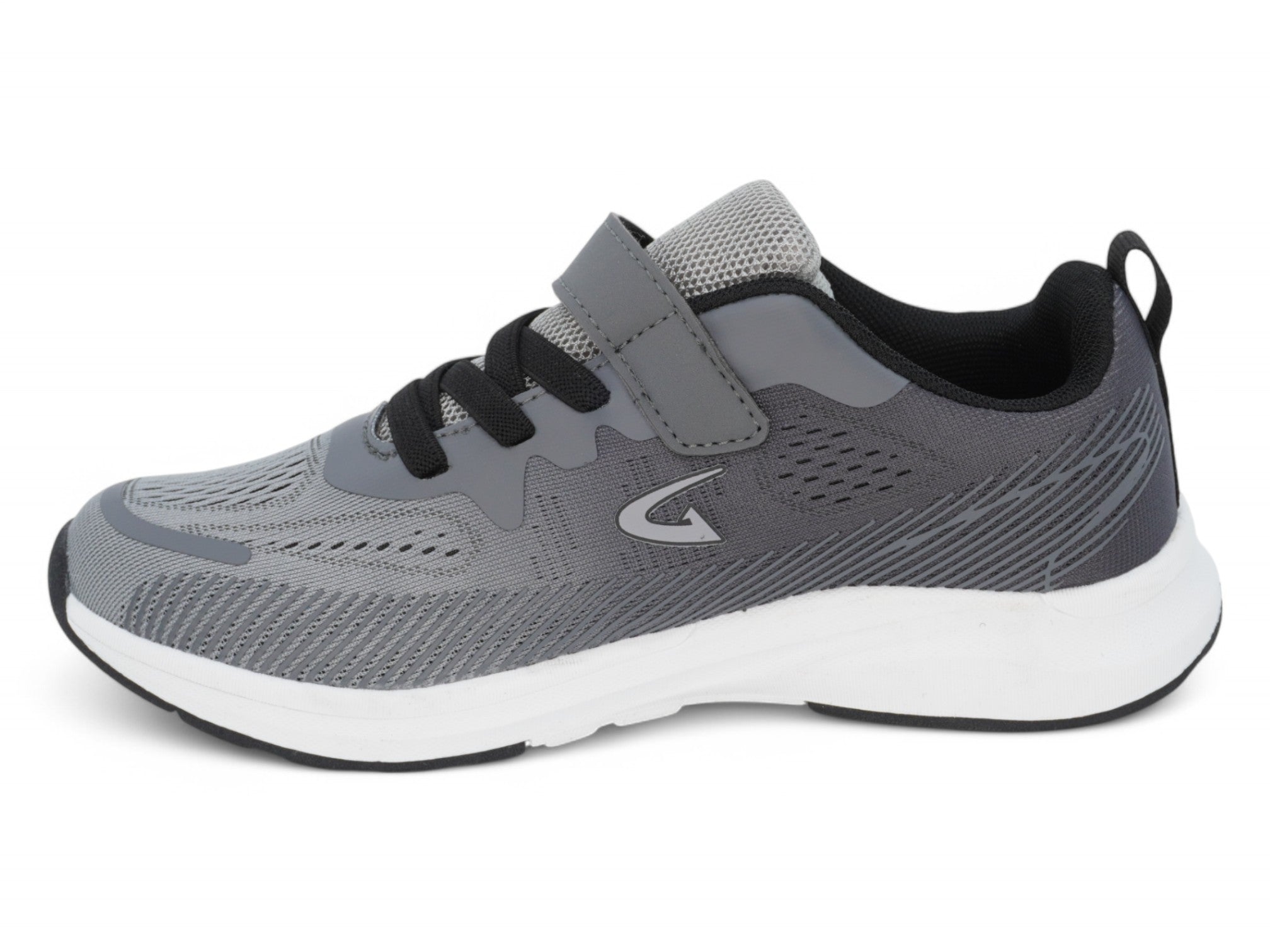 Mejora su estilo diario con las zapatillas Flyknit Velcro grises para niño, que combinan comodidad y rendimiento moderno. Diseñadas con malla de nailon gris transpirable, estas zapatillas garantizan ventilación durante todo el día durante los juegos activos. Los elegantes cordones negros y la correa de velcro gris ofrecen un ajuste seguro y son fáciles de poner y quitar.