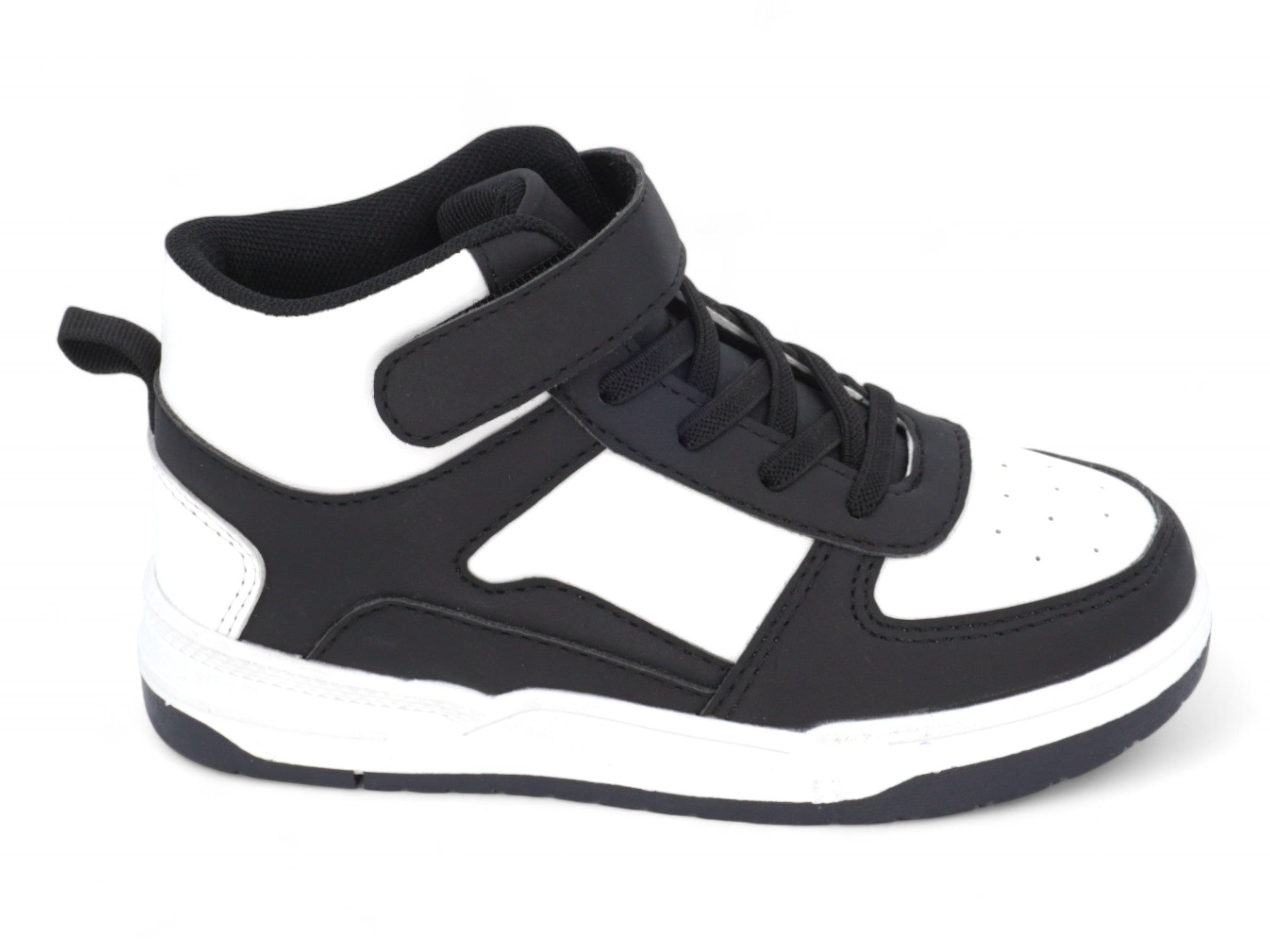 Deja que tu peque salga con estilo con estas zapatillas deportivas negras de caña media con velcro para niño. Diseñadas pensando en los pies de los más pequeños, estas zapatillas altas presentan una clásica combinación de blanco y negro, combinando moda y funcionalidad para las aventuras del día a día.