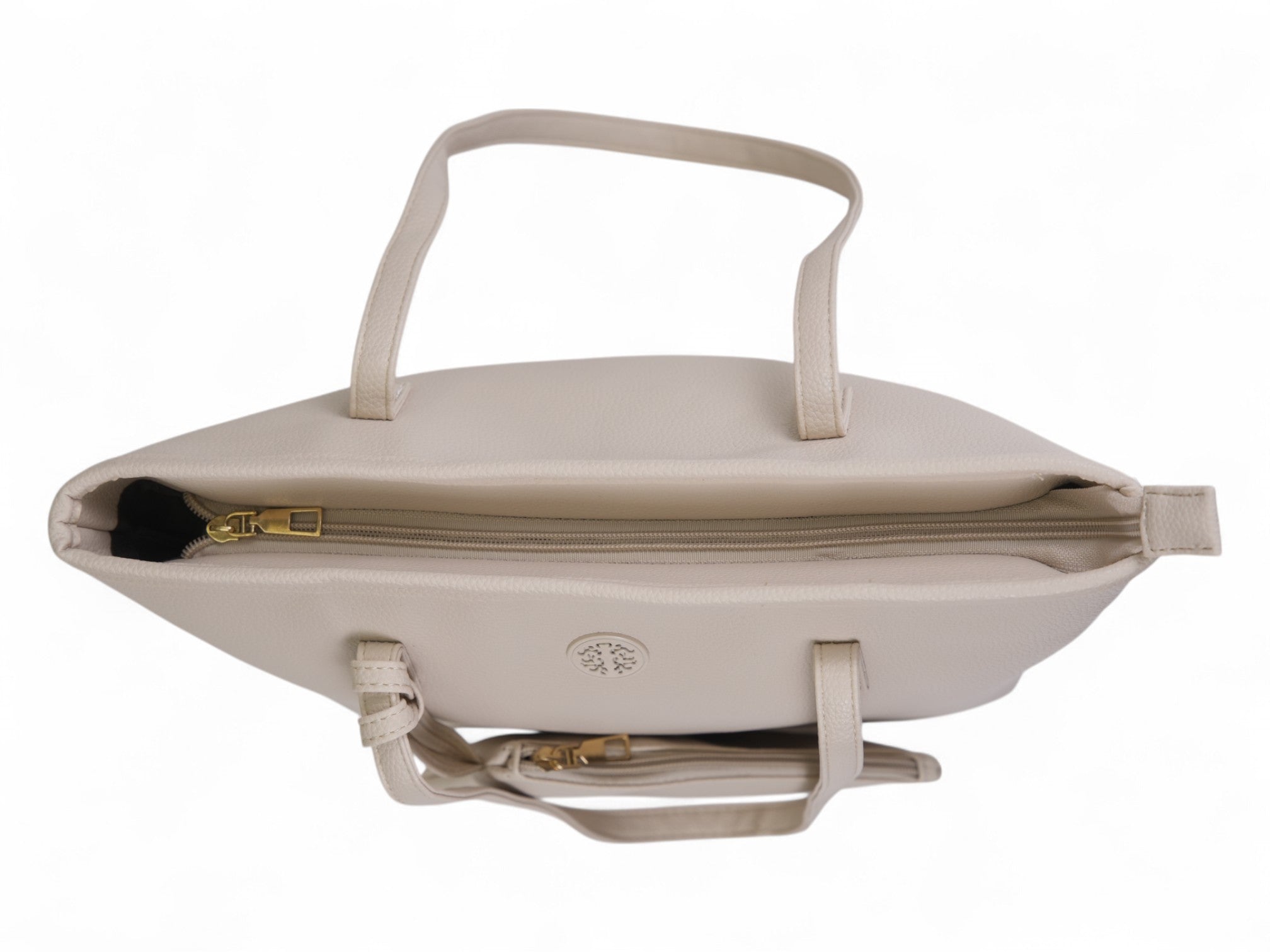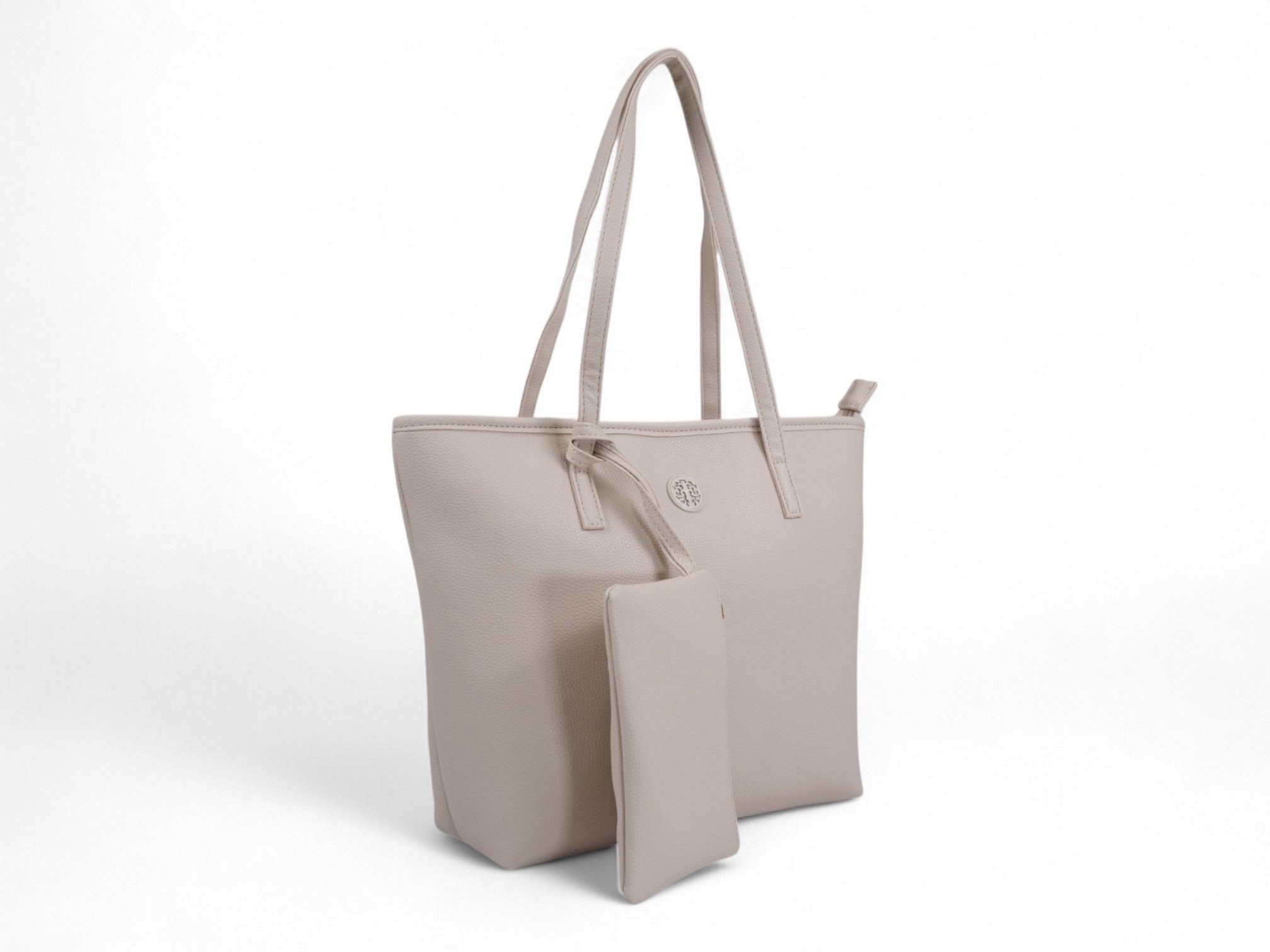 Dale un toque de distinción a tu día a día con el Bone Carry All Tote con Cartera, un accesorio elegante y funcional elaborado en suave piel vegana. Su tono hueso neutro y sus líneas depuradas le confieren un toque atemporal, convirtiéndolo en un complemento perfecto para cualquier look.