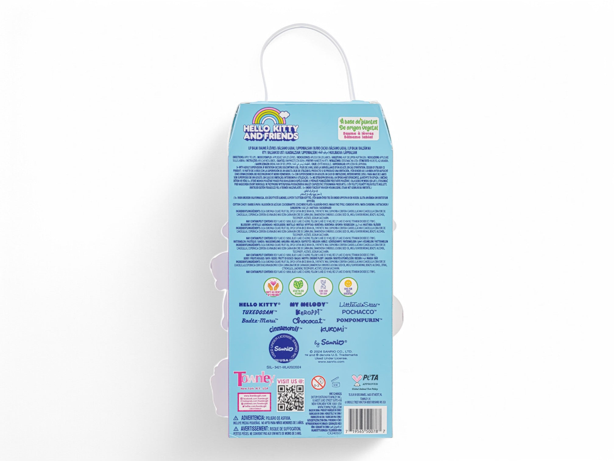 También incluye un set de 4 bálsamos labiales de Hello Kitty, perfectos para mantener los labios suaves e hidratados. Cada paquete contiene cuatro bálsamos labiales diferentes, formulados para ser veganos y sin OMG, lo que los hace seguros y suaves para que los usen los niños.