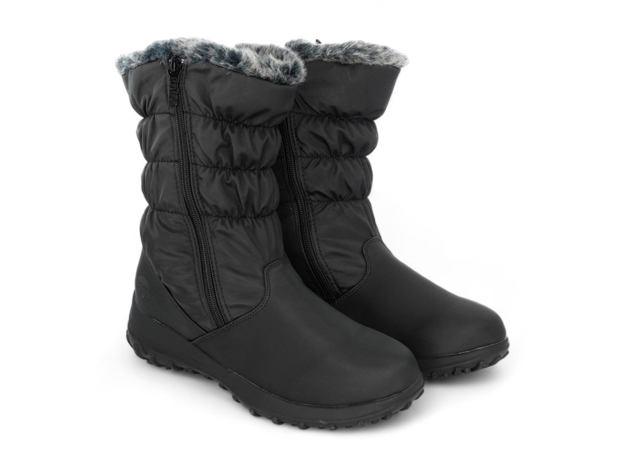 Fabricada con una plantilla acolchada forrada de piel sintética, esta bota ofrece una comodidad acolchada que dura todo el día. La suela de cuña ofrece una altura sutil y estabilidad, y la resistente suela sintética con dibujo proporciona un agarre fiable en condiciones invernales. Ideal para aceras nevadas o días frescos al aire libre.