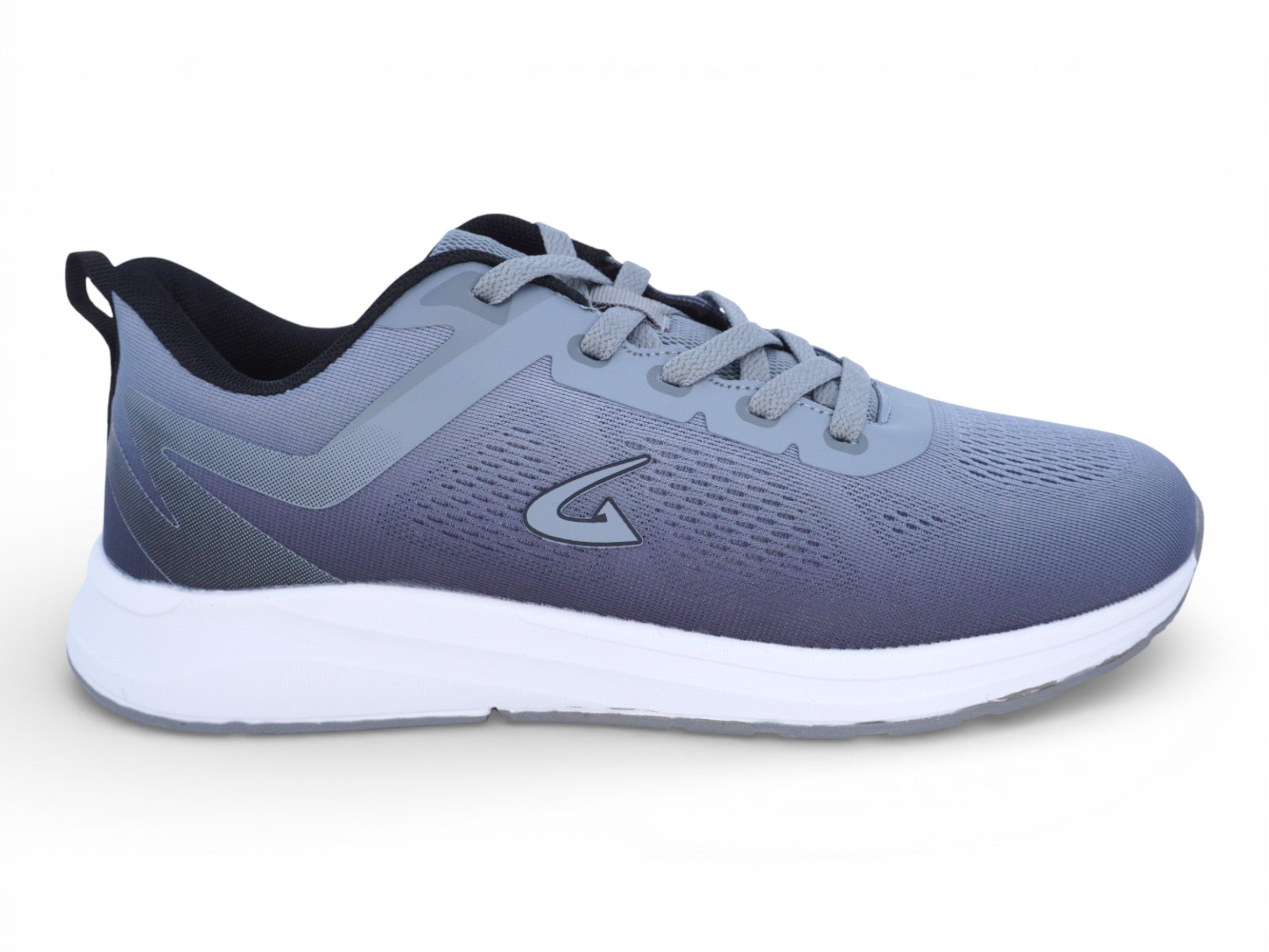 Mejora tu estilo y comodidad con las zapatillas Flyknit Duo Tone Gray para hombre. Estas zapatillas deportivas cuentan con una parte superior de malla Flyknit gris transpirable, diseñada con un sutil efecto degradado para un look moderno y versátil. El forro negro y los cordones a juego crean un elegante contraste.
