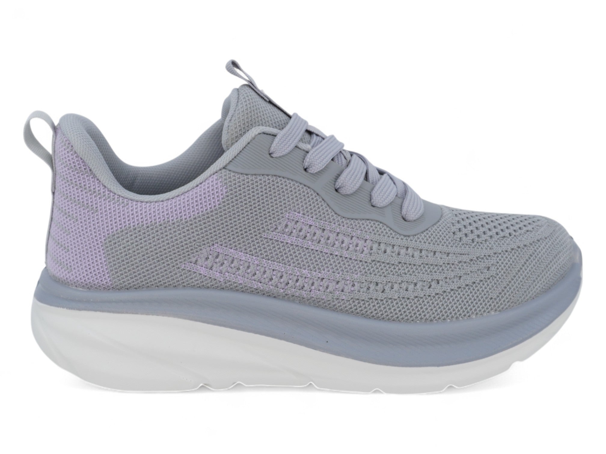 Disfruta de la comodidad y el estilo con las zapatillas deportivas Cyberstep para mujer en gris y morado. Diseñadas con una parte superior de punto gris, estas zapatillas ofrecen un ajuste transpirable y flexible, perfecto para el día a día y entrenamientos ligeros. La parte delantera con cordones garantiza un ajuste seguro, mientras que los sutiles detalles morados aportan un toque moderno de color.