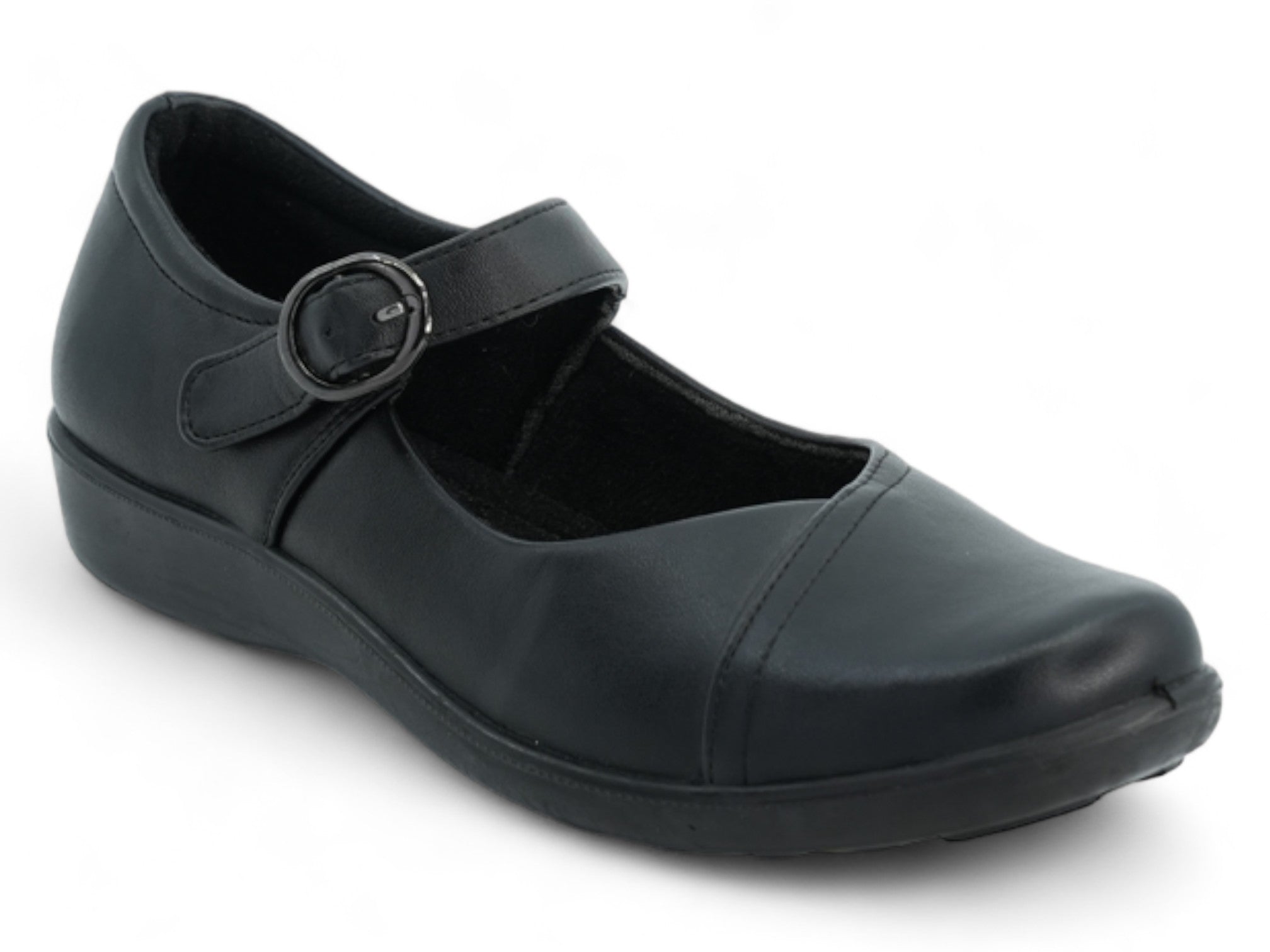 Luce un estilo clásico y comodidad durante todo el día con estas Mary Janes planas negras para mujer. Diseñadas con una silueta atemporal, presentan punta redondeada, tacón bajo y una tira ajustable con una elegante hebilla en el empeine para un ajuste seguro y personalizable. Las costuras diagonales cuidadosamente colocadas añaden un sutil toque de detalle, lo que las hace perfectas tanto para la escuela como para el día a día.