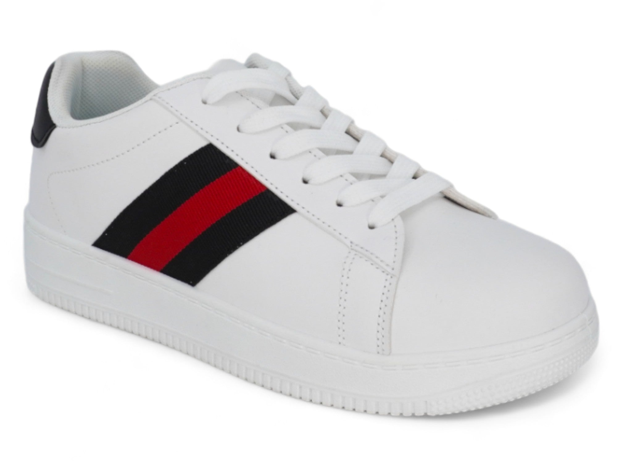 Mejora su estilo diario con las zapatillas blancas de rayas rojas para niño: una opción versátil y cómoda para las aventuras diarias. Confeccionadas en elegante piel vegana blanca, estas zapatillas lucen una llamativa cinta lateral roja y negra que añade un toque deportivo a cualquier look. Su diseño clásico con cordones garantiza un ajuste seguro y ajustable para pies activos.