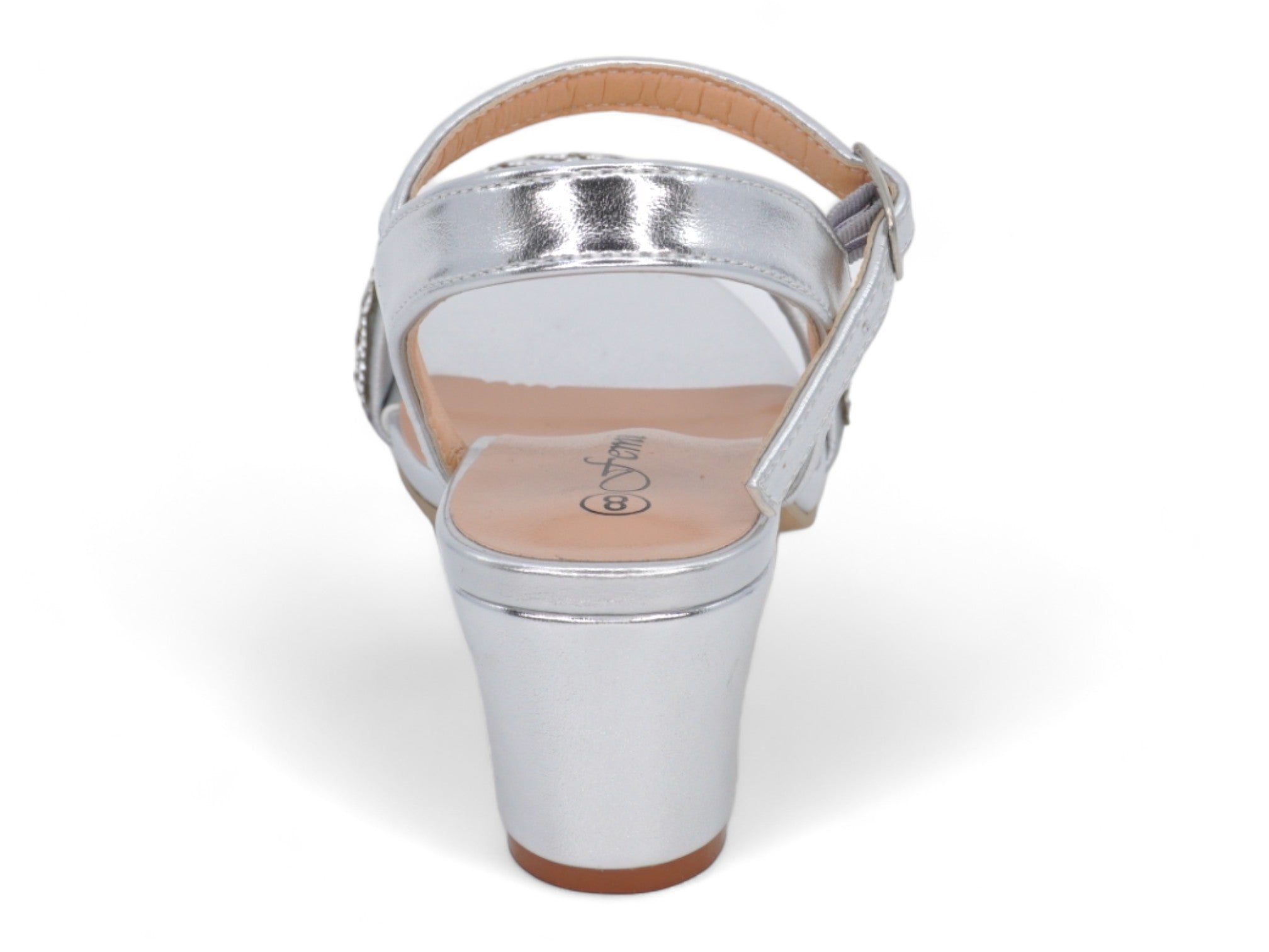 Adéntrate en la elegancia sin esfuerzo con el Tacón Carmín Plateado para Mujer, una combinación deslumbrante de estilo y comodidad. Elaborada en elegante piel vegana plateada, esta sandalia de tacón alto añade un toque de glamour a cualquier look. Las gemas espejadas en la tira decorativa delantera ofrecen un brillo refinado, mientras que el patrón tejido aporta textura y sofisticación.