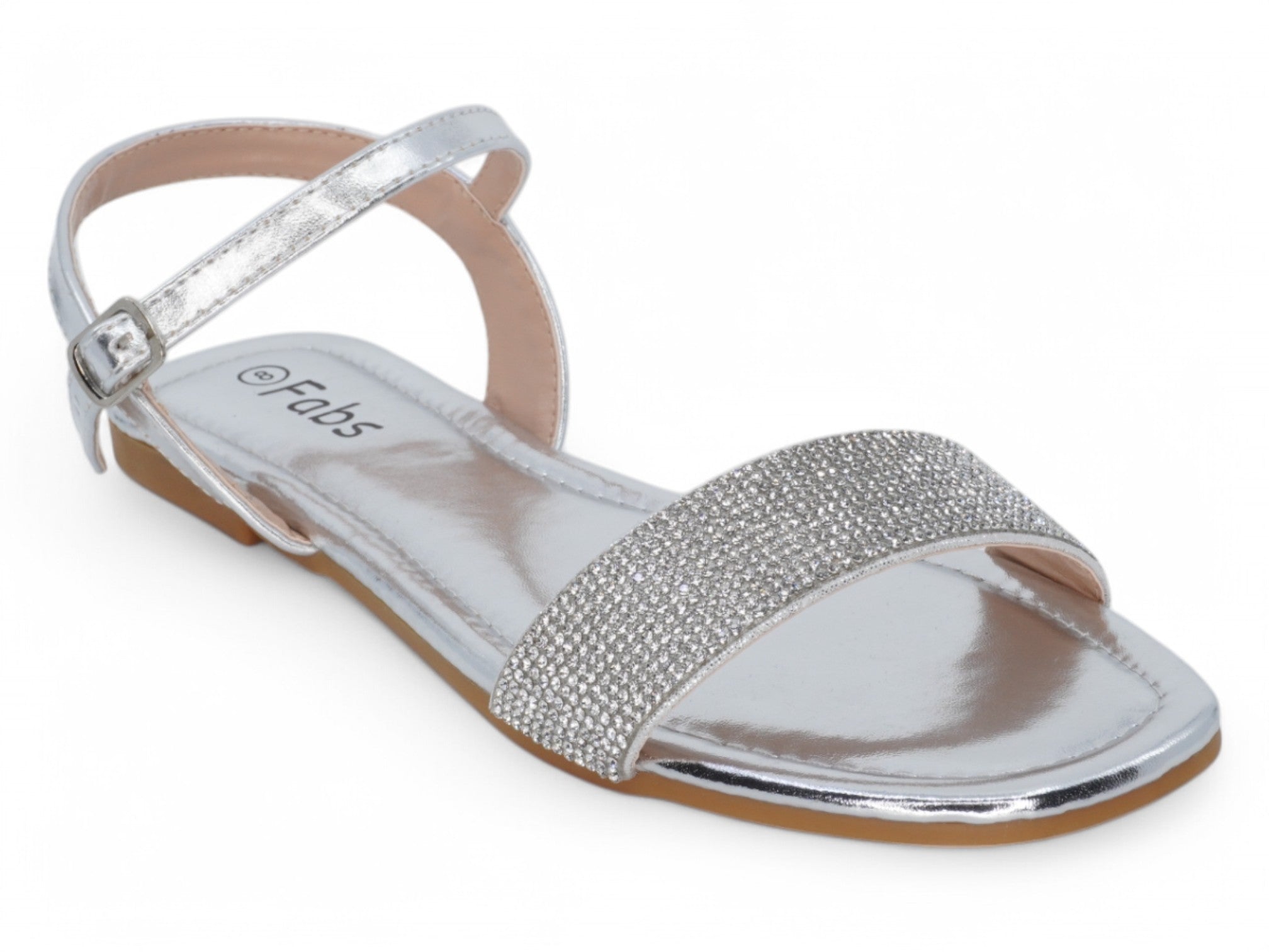 La banda frontal brilla con delicados cristales de imitación, creando un refinado toque de brillo. Una correa de tobillo con hebilla ajustable garantiza un ajuste cómodo y personalizado. La plantilla plateada metalizada realza el elegante acabado, mientras que la plantilla y la suela sintéticas proporcionan un soporte ligero para usarlas todo el día.