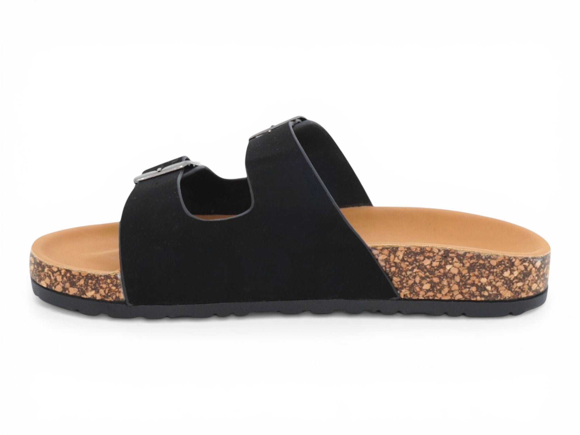 Black nubuck with buckle straps.