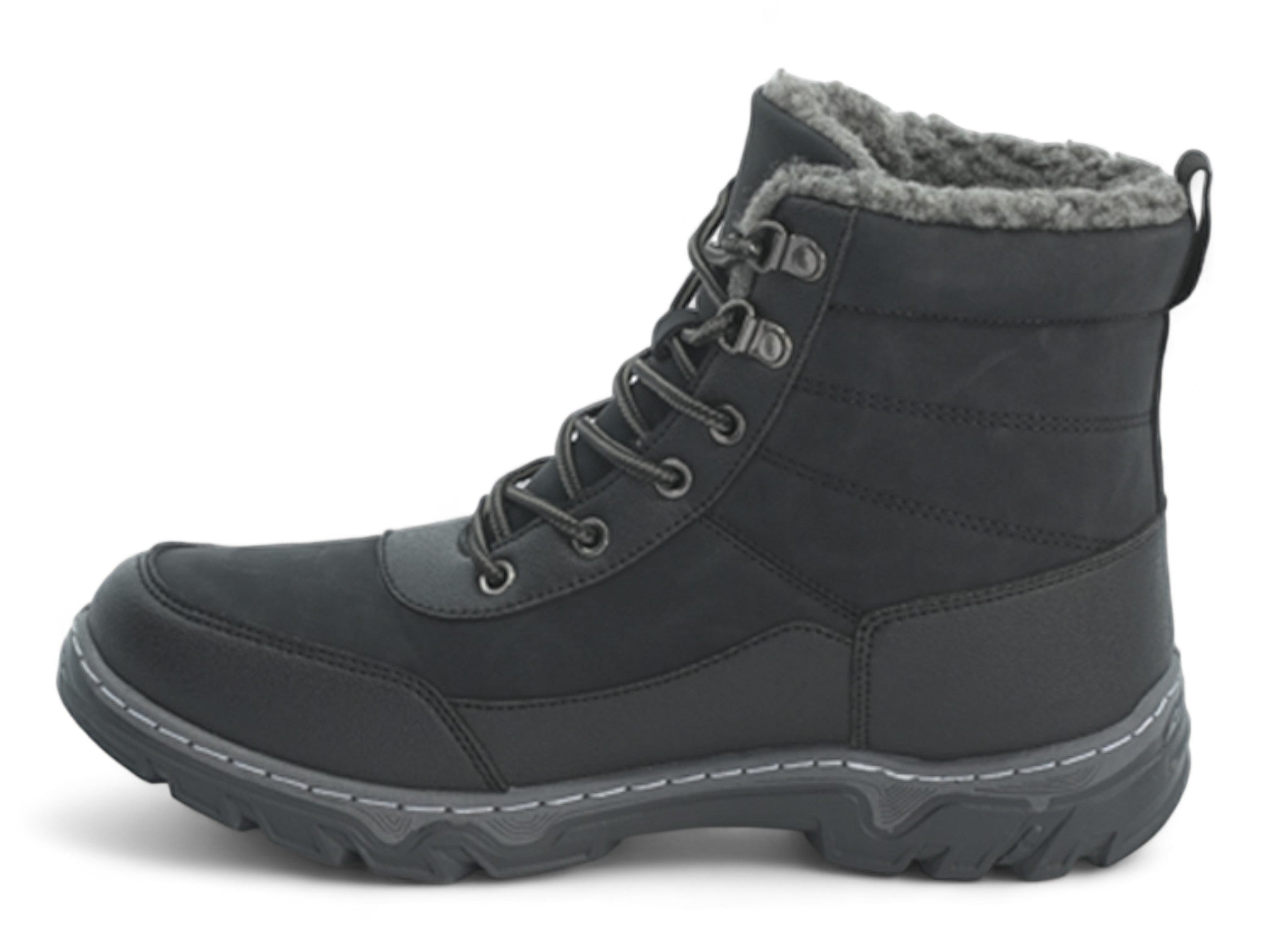 Fabricadas en cuero vegano negro resistente al agua, estas botas ofrecen durabilidad y protección ante condiciones climáticas impredecibles. Los cordones elásticos proporcionan un ajuste flexible y seguro, mientras que la plantilla de soporte garantiza una comodidad duradera durante todo el día. Con una suela exterior robusta y gruesa, estas botas ofrecen una excelente tracción en terrenos helados o irregulares, lo que las convierte en un compañero confiable para tus aventuras invernales.