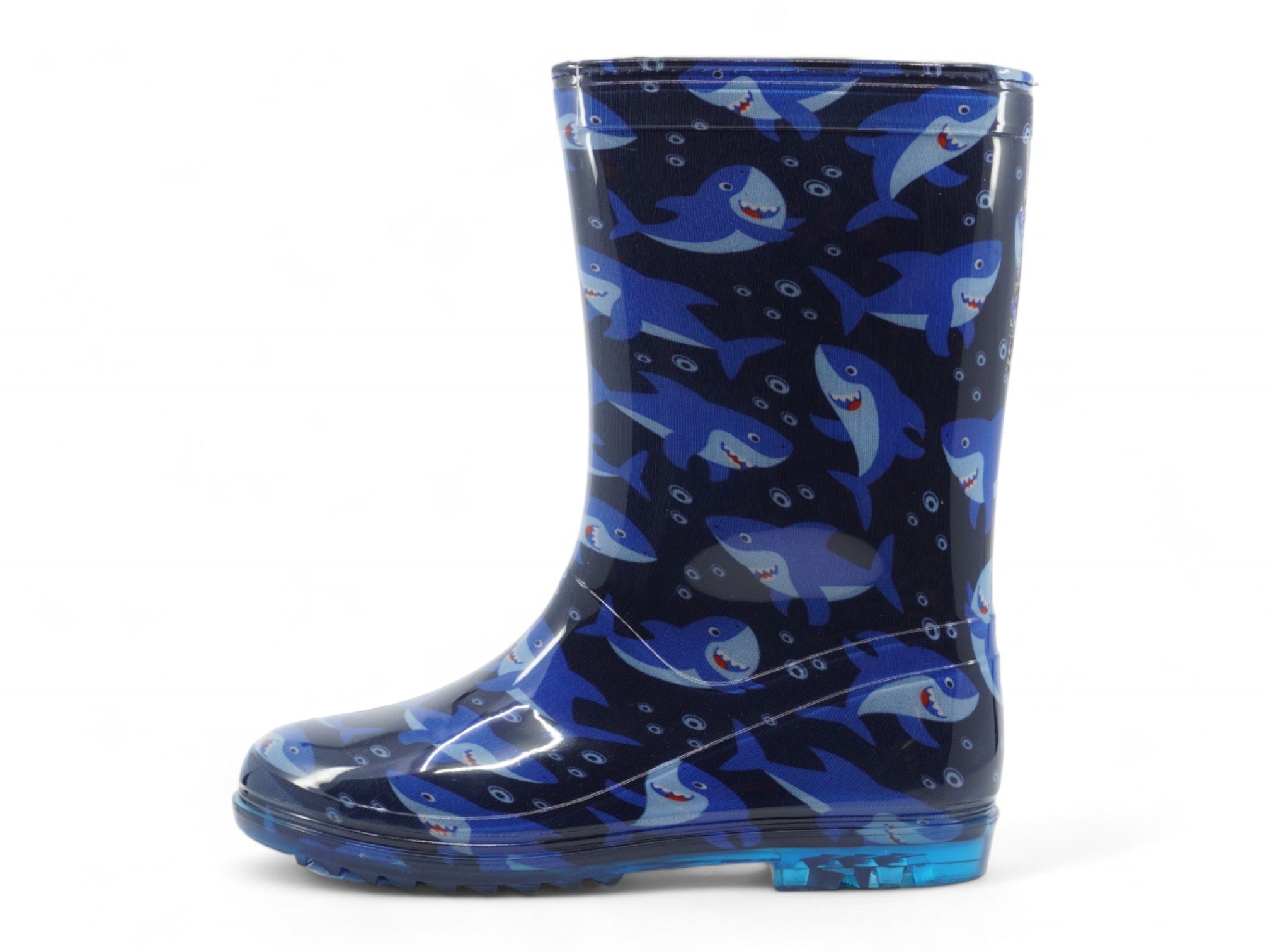 Deja que tu pequeño aventurero chapotee en los charcos con estilo con nuestras botas de lluvia Shark para niño. Con un diseño divertido y enérgico de tiburones azules y burbujas divertidas sobre un fondo oscuro, estas botas harán que los días de lluvia sean inolvidables.