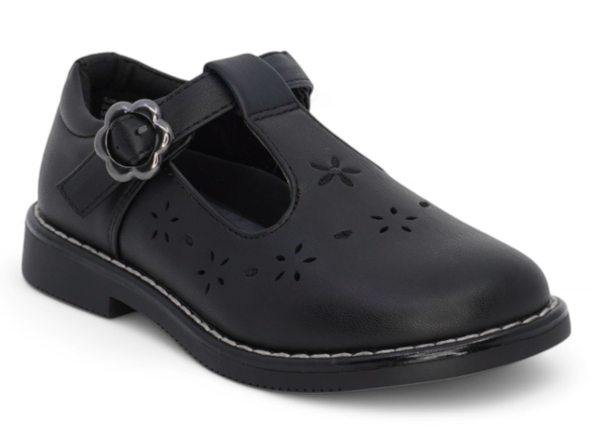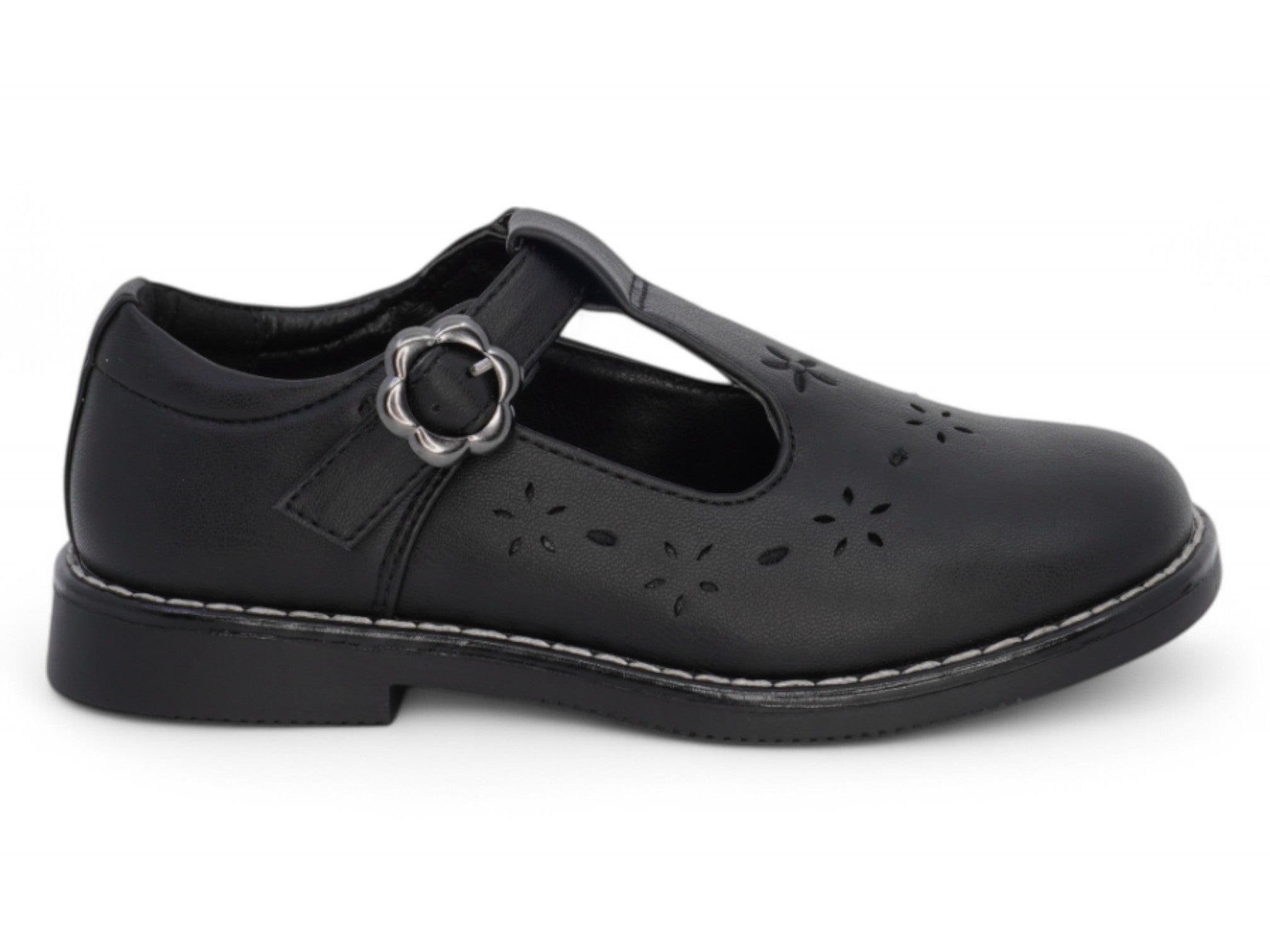 Black vegan leather T-strap