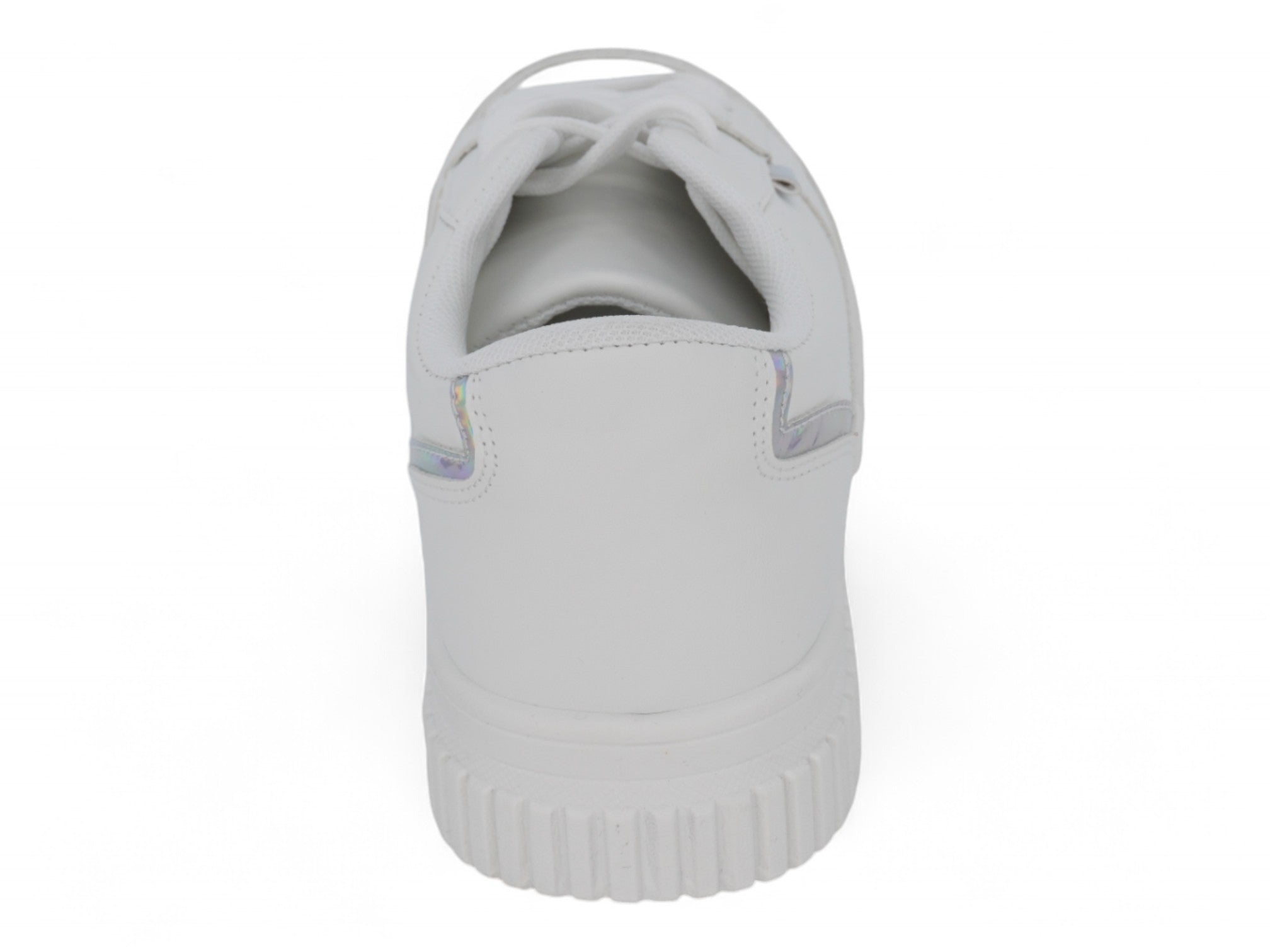 The thick platform sole adds a trendy lift while offering added support and durability. A subtle holographic detail on the side brings a fun, modern twist to its classic lace-up design. Crafted with a sturdy synthetic outsole, these sneakers are built for wear-anywhere versatility.