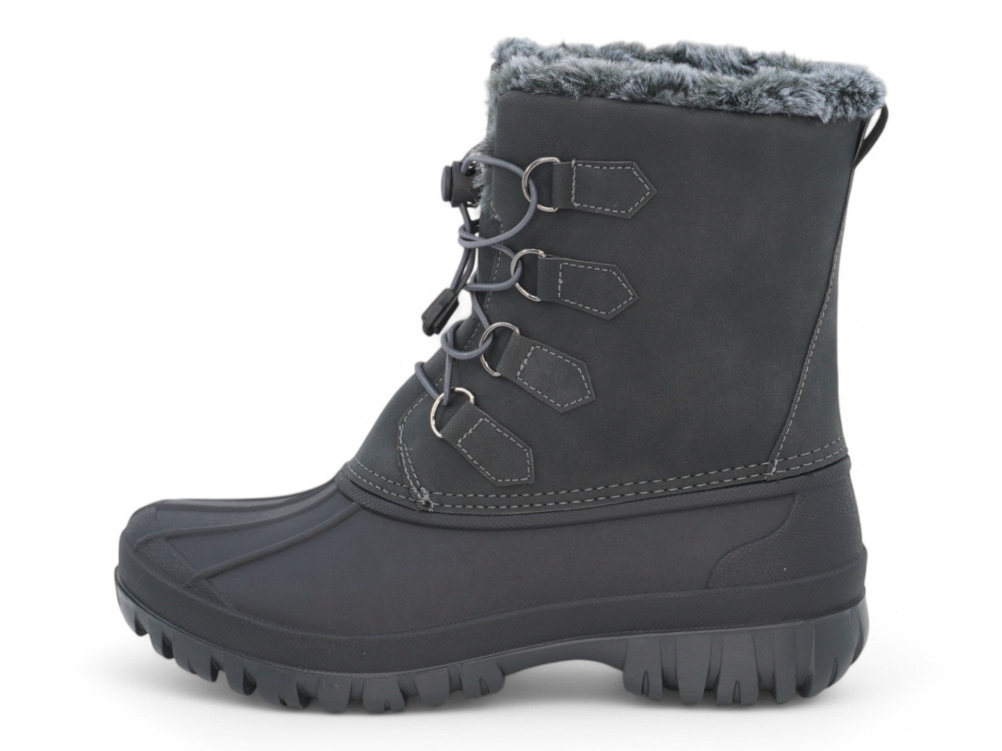 A rugged textured synthetic outsole with a waterproof shell provides dependable traction on snowy and slippery surfaces.