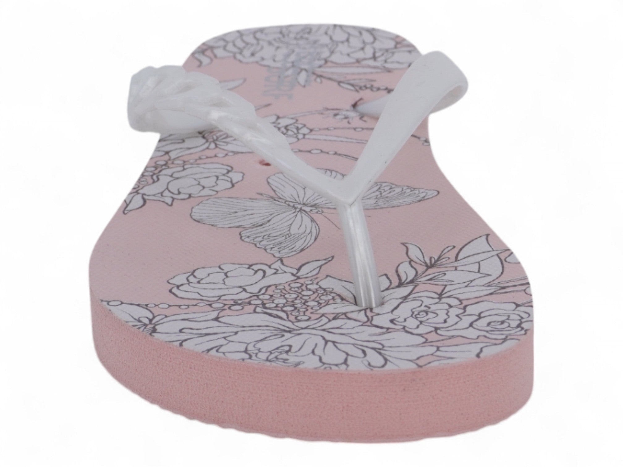 Women`s Pink & White Butterfly Flip Flops